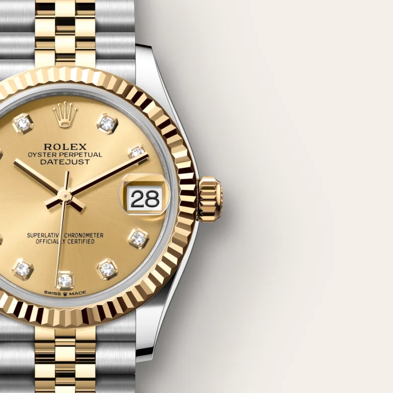The Rolex fluted bezel is a mark of distinction. Originally, the fluting of the Oyster bezel had a functional purpose: it served to screw the bezel onto the case helping to ensure the waterproofness of the watch. It was therefore identical to the fluting on the case back, which was also screwed onto the case for waterproofness, using specific Rolex tools. Over time, the fluting became an aesthetic element, a genuine Rolex signature feature. Today the fluted bezel is a mark of distinction, in gold on this Datejust 31.